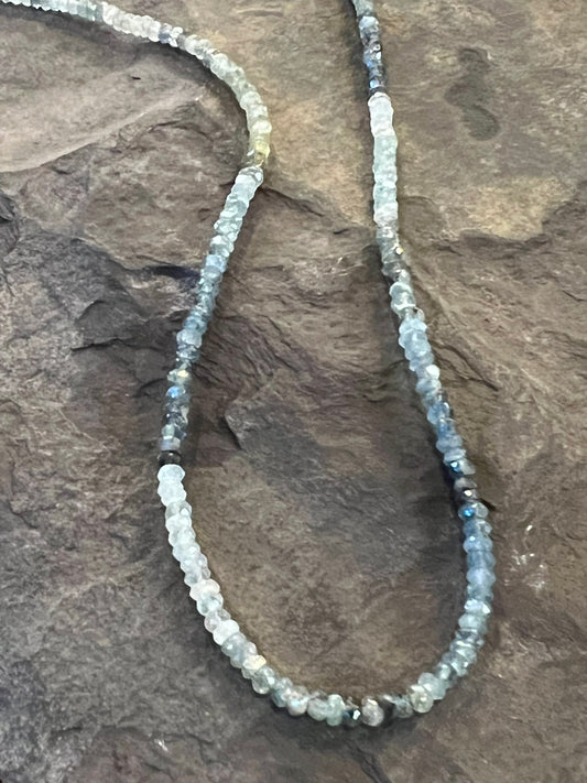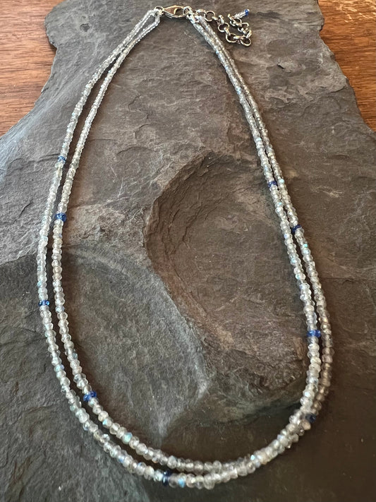 Labradorite & Blue Sapphire Double Strand Necklace 16 - 18.5”