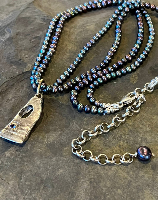 Gulf Relic Sterling Shell Fragment Talisman with Tanzanite Necklace - Salt Series