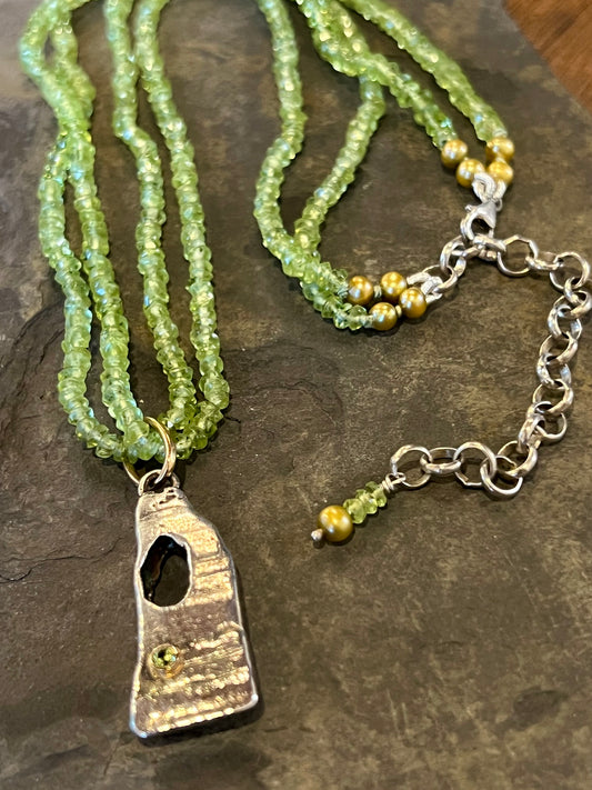 Gulf Relic Sterling Shell Fragment Talisman with Peridot Necklace- Salt Series