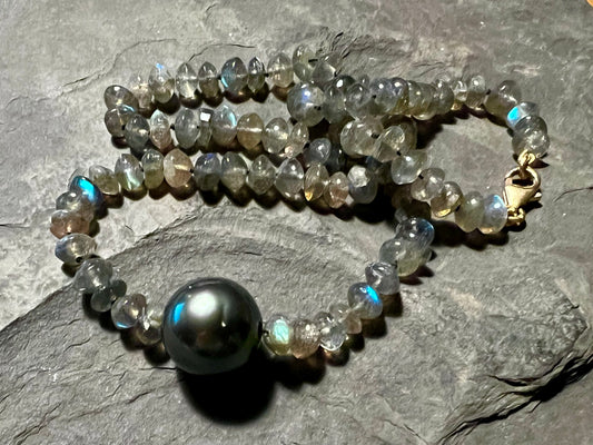Tahitian Pearl & Labradorite Strand - One of a Kind Necklace