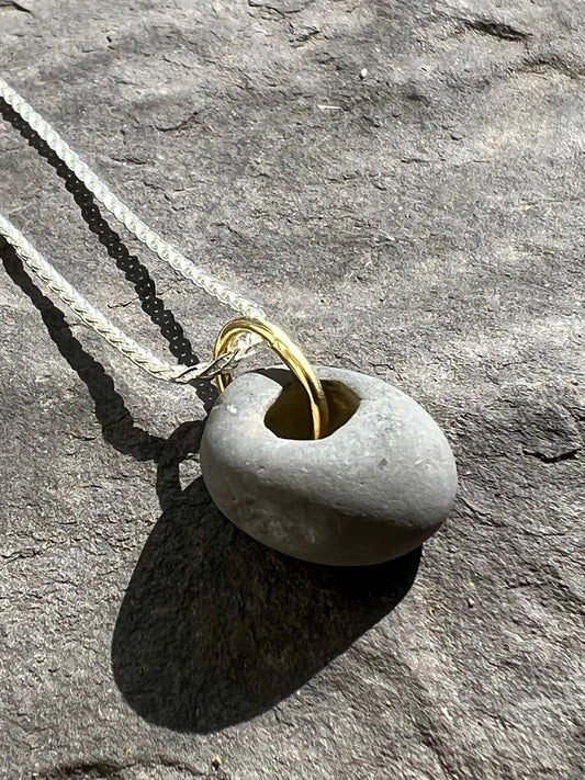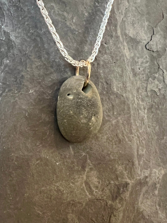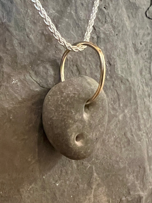 Brachiopod Fossil Sterling Silver &14K Pendant Unisex - Cayuga Collection Necklace