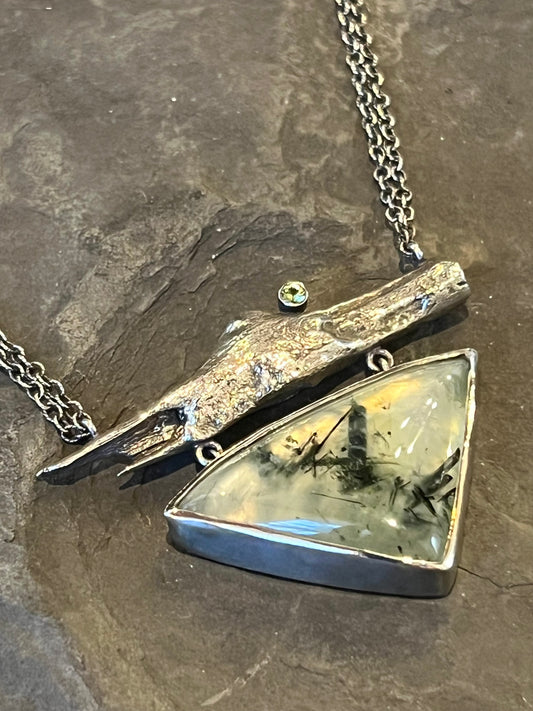 Driftwood Sterling Silver Necklace with Green Epidote in Quartz & Peridot- Cayuga Collection