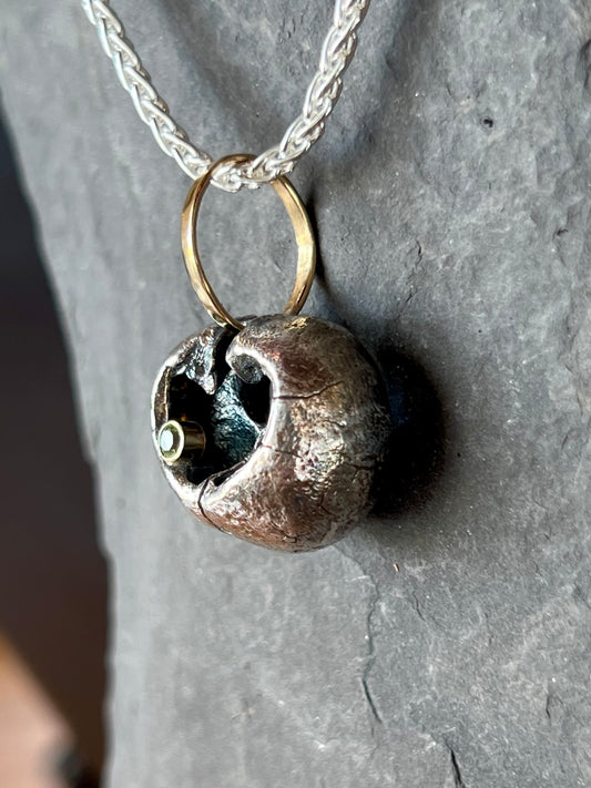 Sterling & 14k Hickory Strength Talisman with Peridot- Unisex Necklace- Cayuga Collection