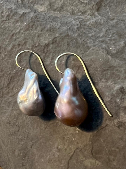 Large Blush Baroque Pearl 14K Demi-Dangle - Minimalist Earrings