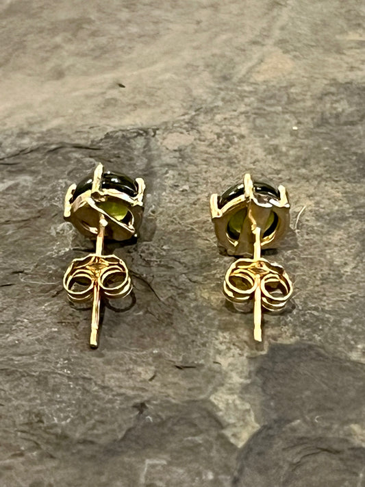 Vesuvianite Cabochon Stud - Minimalist Earrings