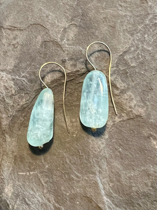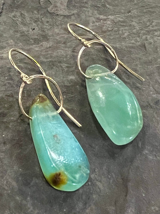 Minimalist Imperial Green Chalcedony Freeform 14K Earrings- One of a Kind