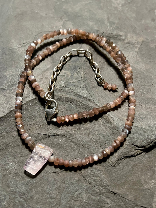 Calming Kunzite Crystal Moonstone Strand - Minimalist Necklace