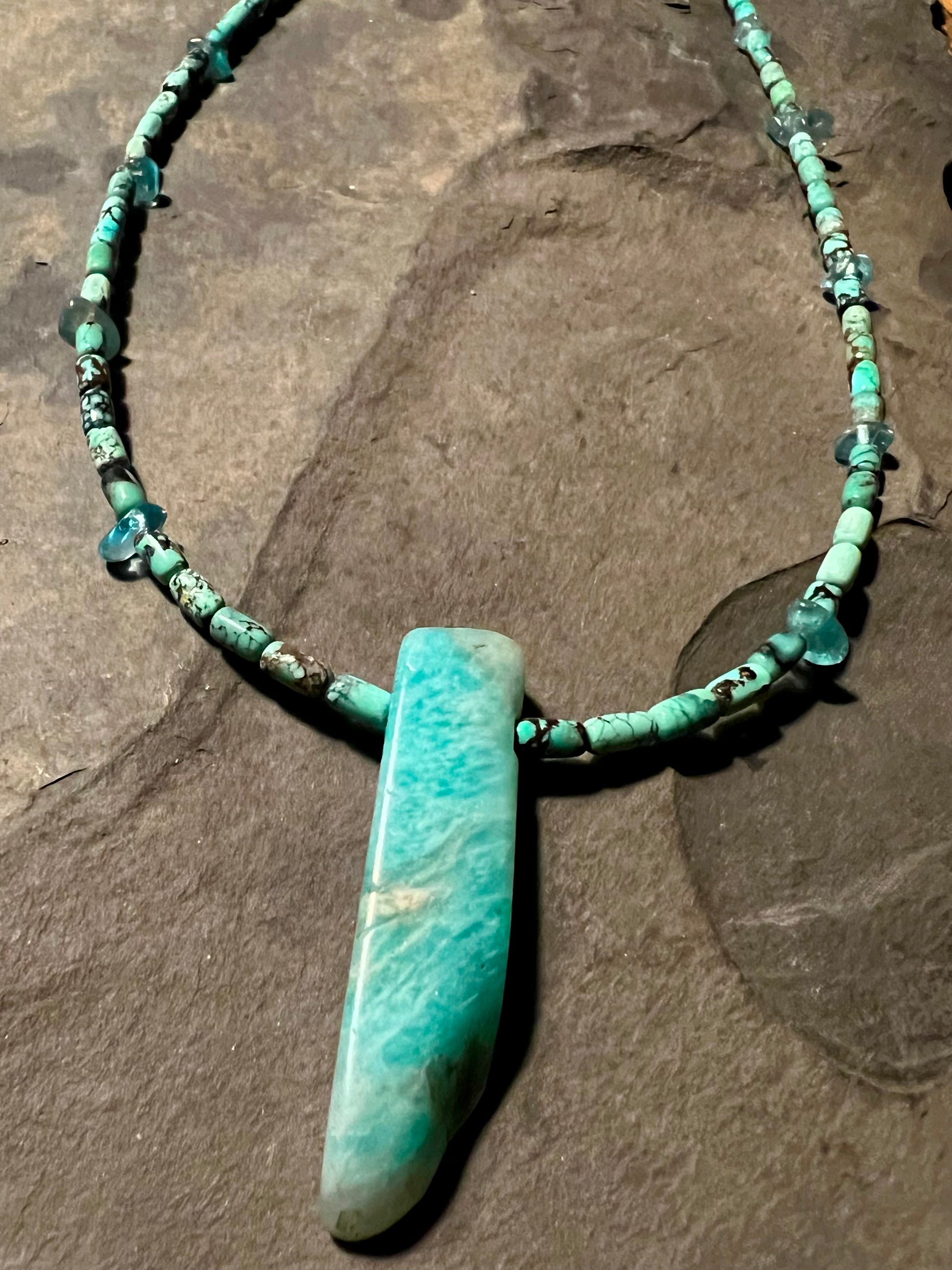Amazonite Blade on Turquoise Unisex Necklace