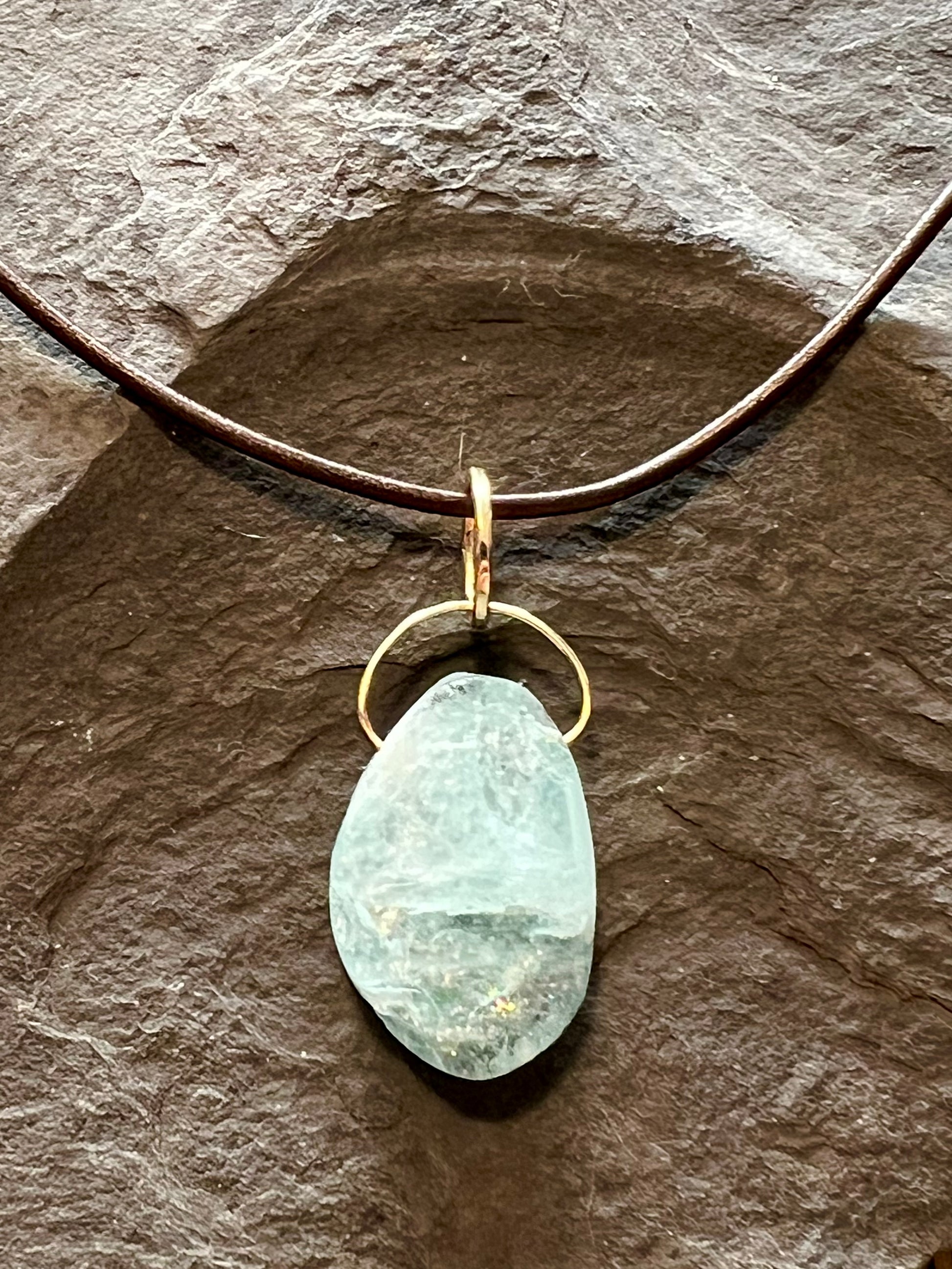 Aquamarine Gem Rough Pendant - Minimalist Necklace