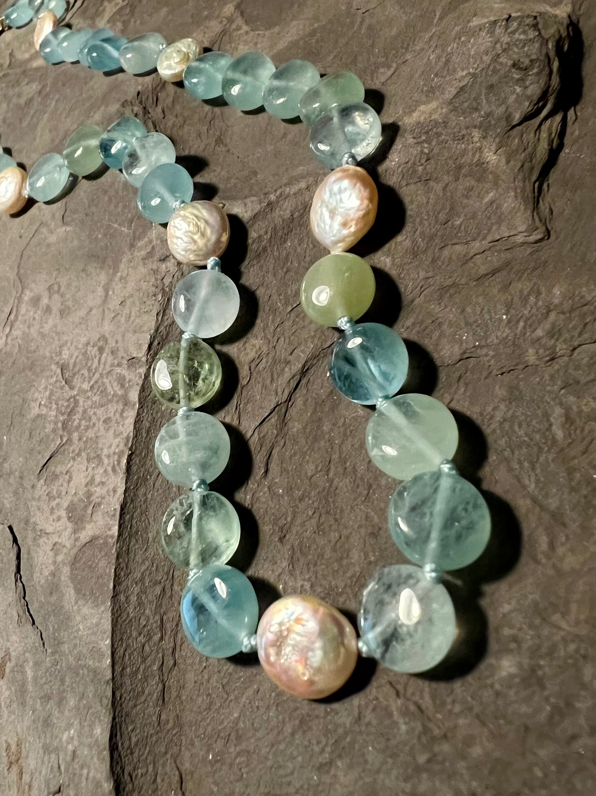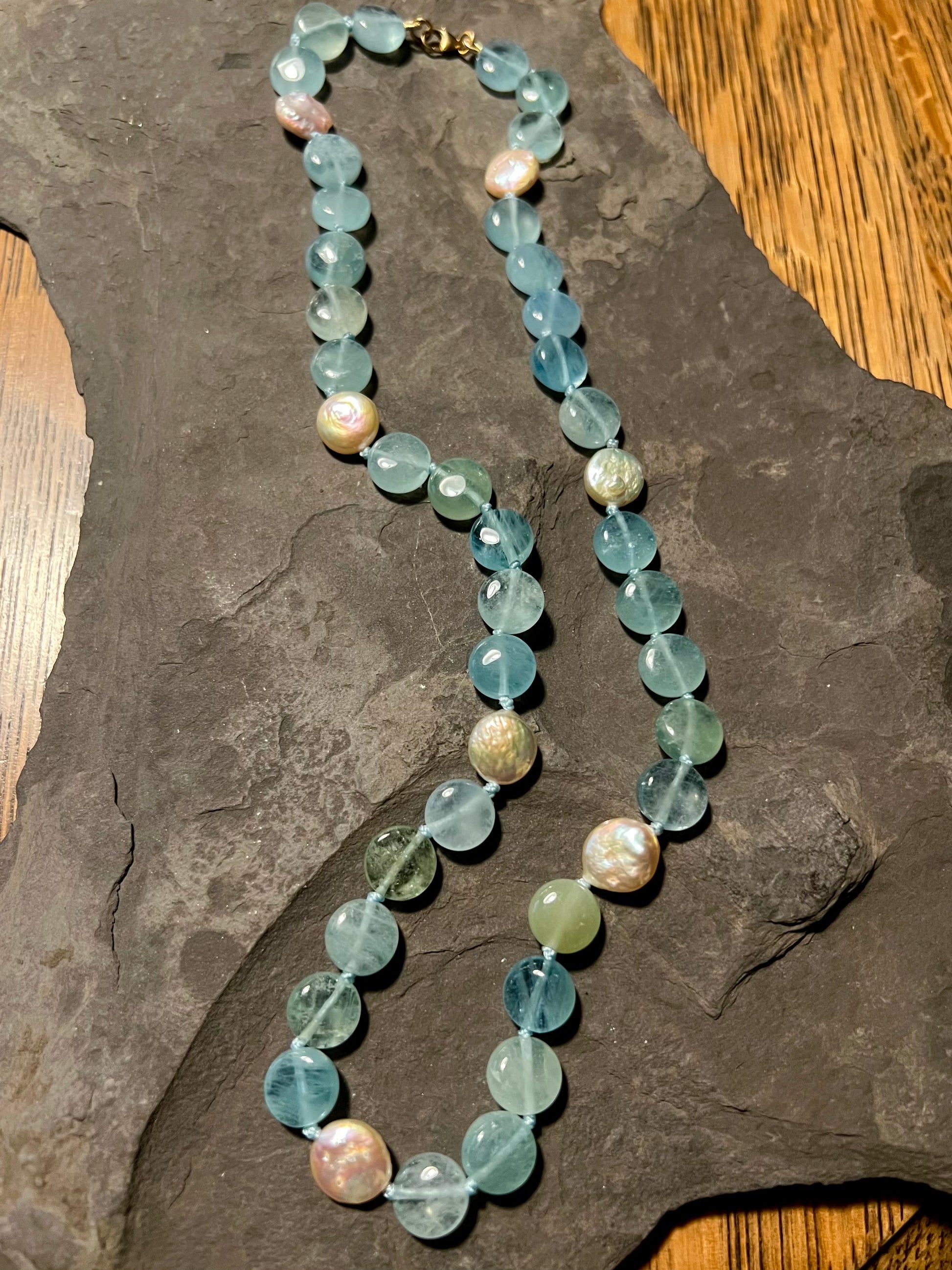 Aquamarine with Coin Pearl Strand - One of a Kind Necklaces
