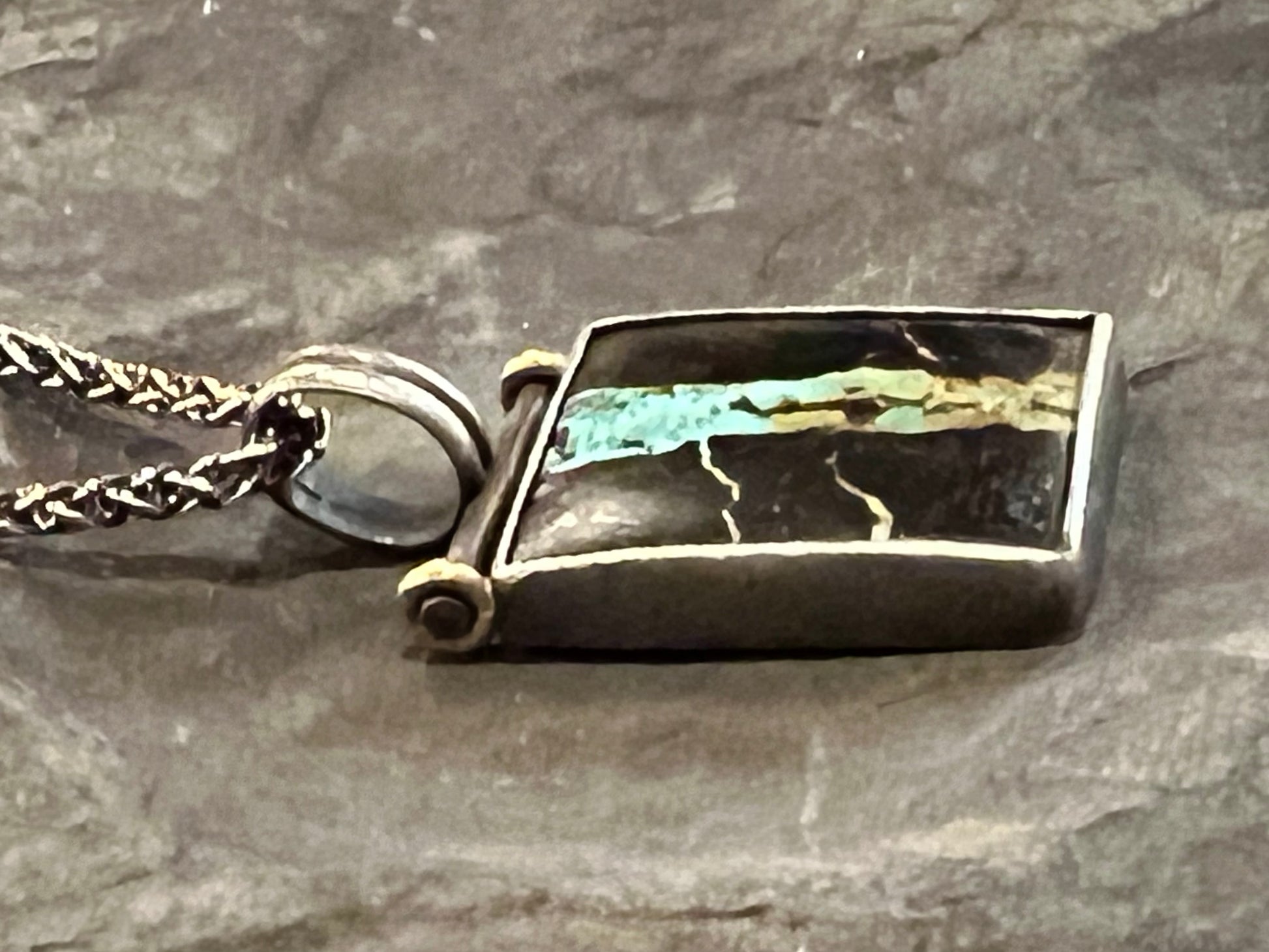 Black Jack Turquoise Sterling & 14K Hinged One of a Kind Pendant