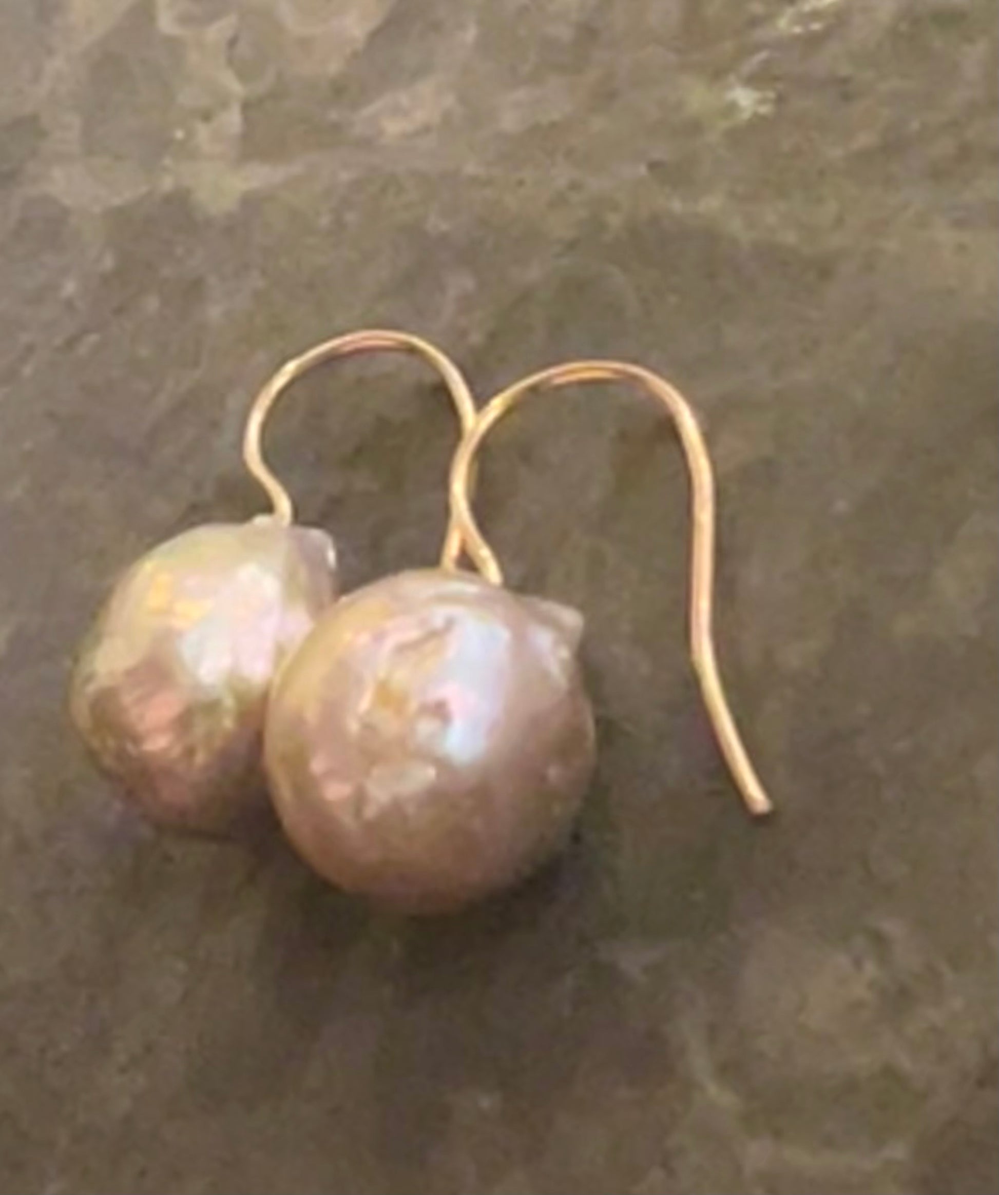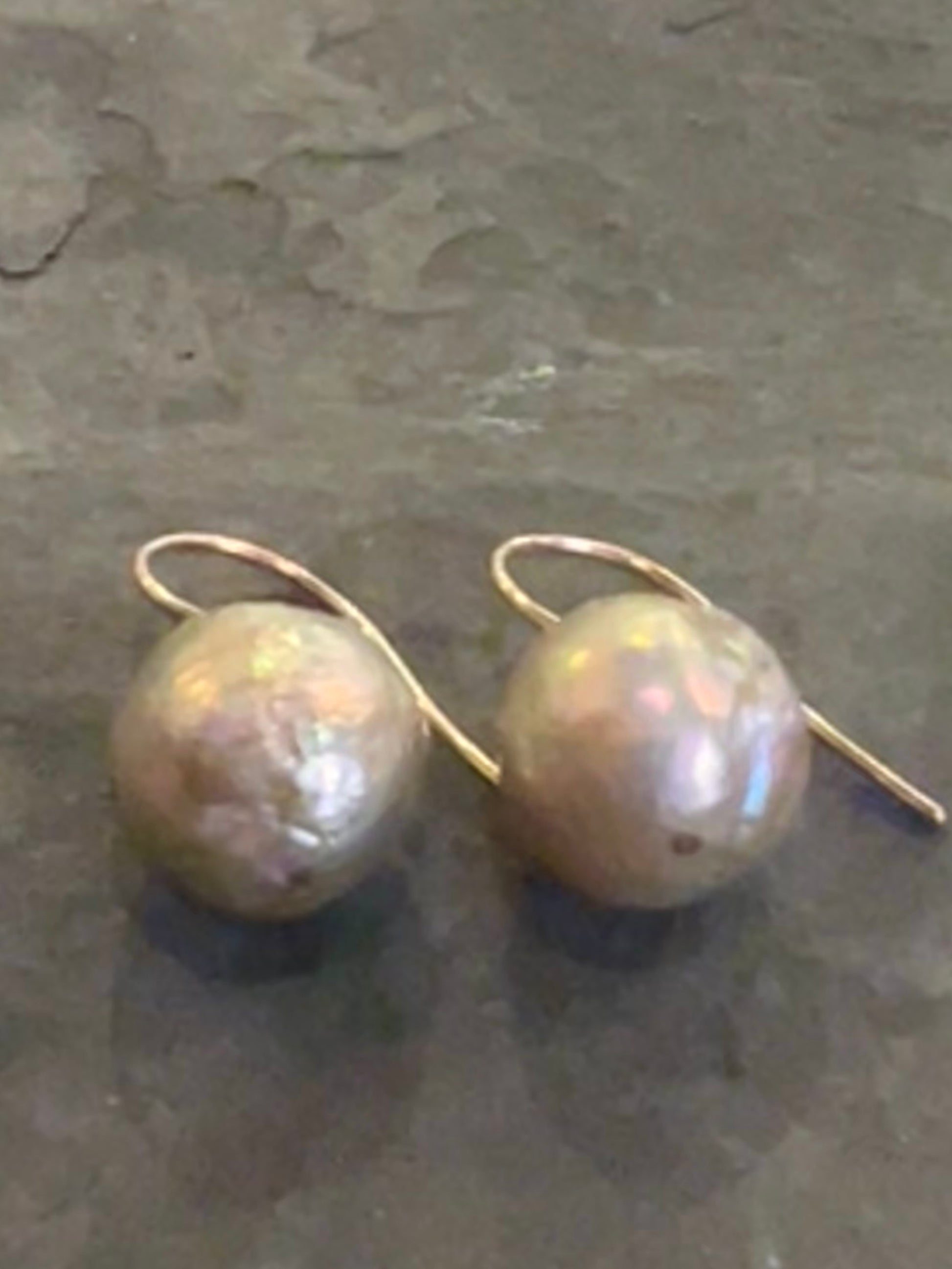 Blush Baroque Freshwater Pearl on a minimalist 14K yellow gold ear wire