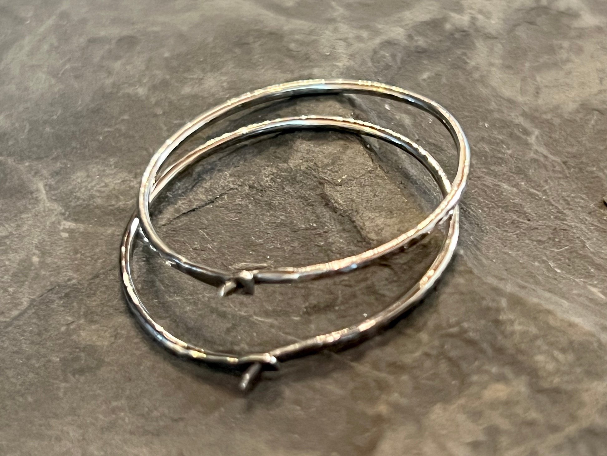 Lightly oxidized to accentuate the hammered finish