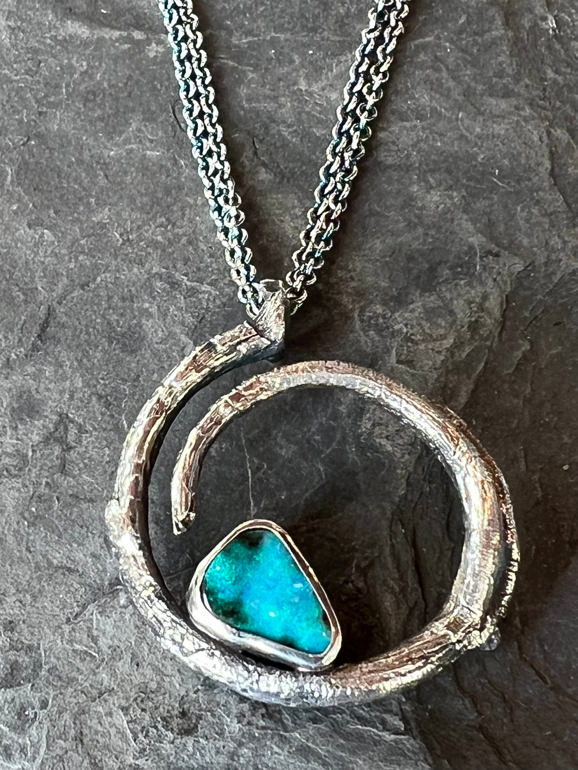 This one of a kind pendant is on a 16” Sterling double cable chain with a lobster clasp and 2.5” extender and Apatite dangle.