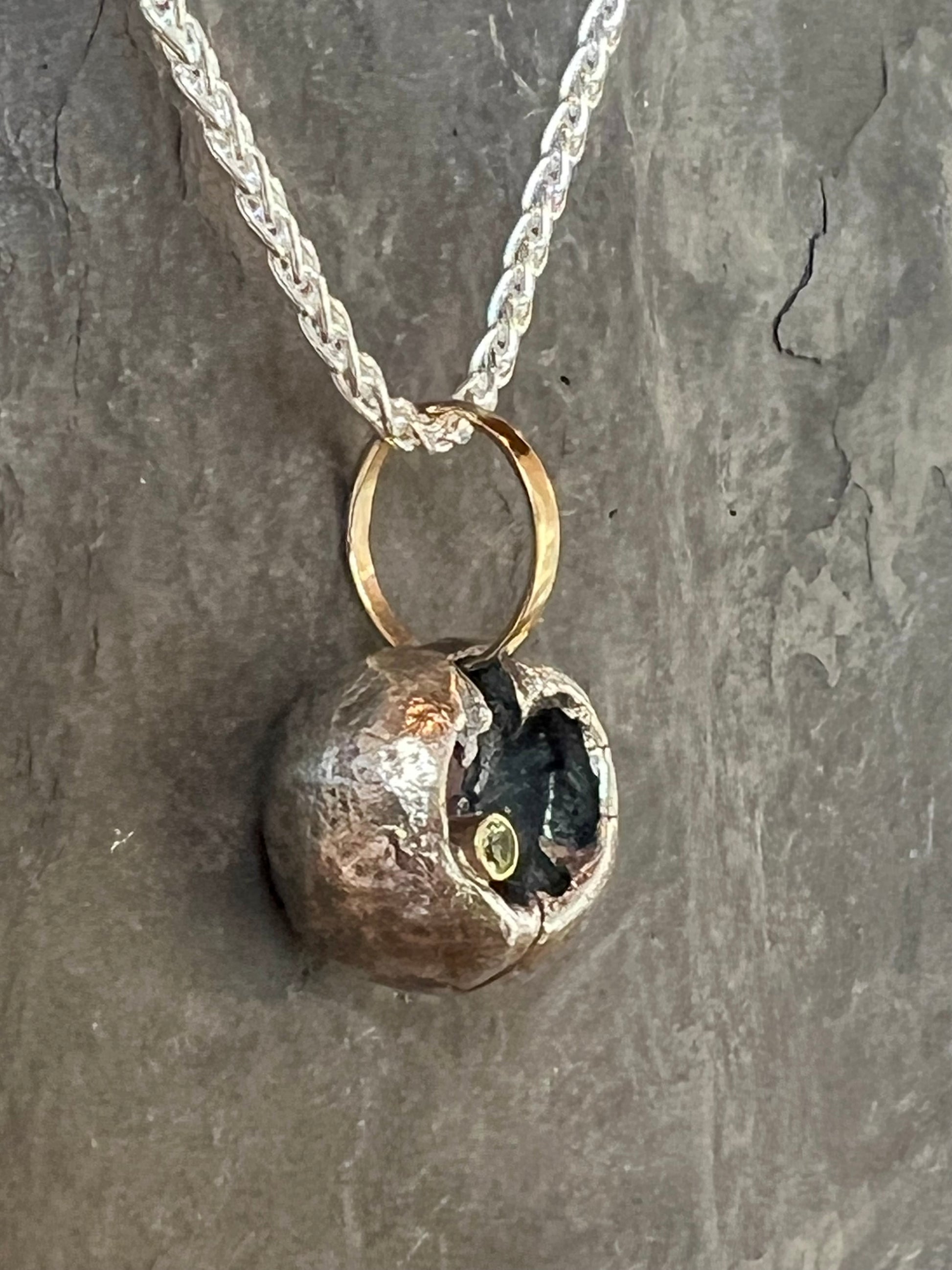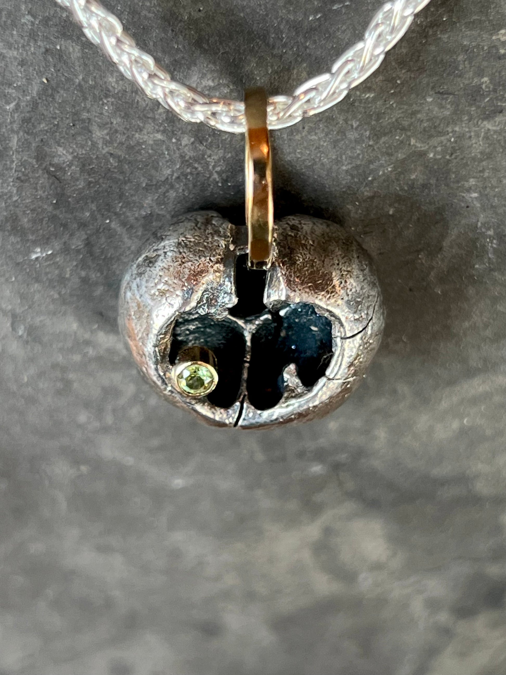 Sterling & 14k Hickory Strength Talisman with Peridot- Unisex Necklace- Cayuga Collection