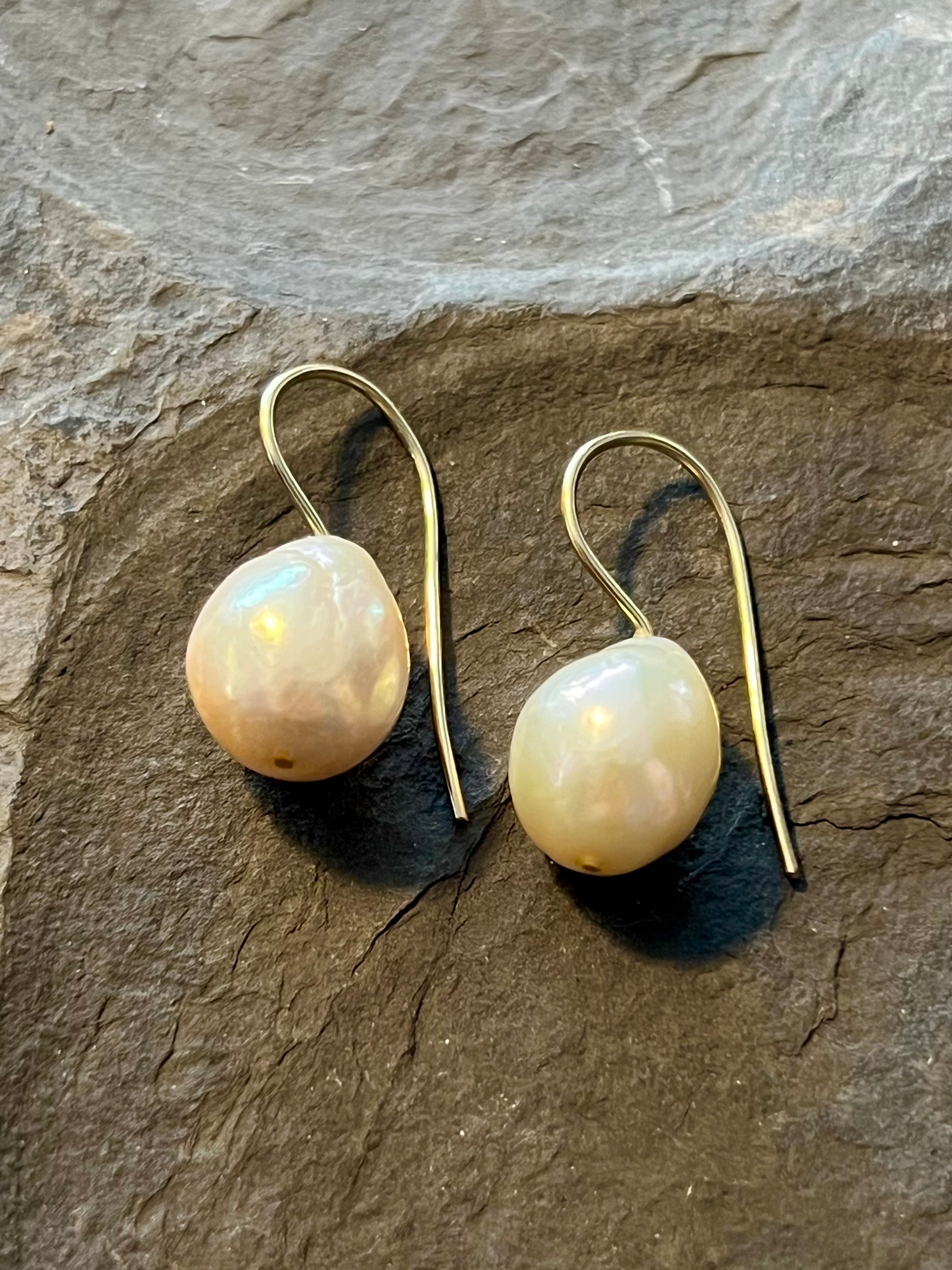 Creamy Baroque Freshwater Pearl on a minimalist 14K yellow gold shepperd hook ear wire