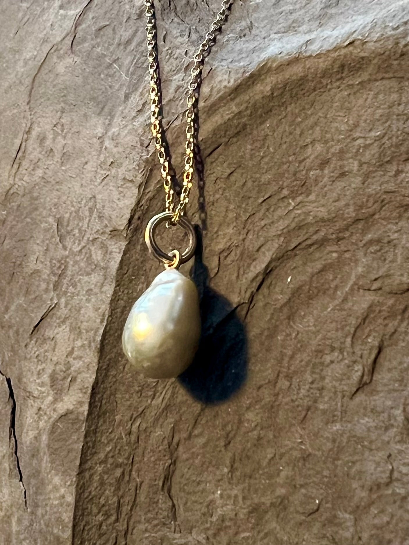 Creamy Tahitian Pearl on 14K yellow gold minimalist bail and oval link chain