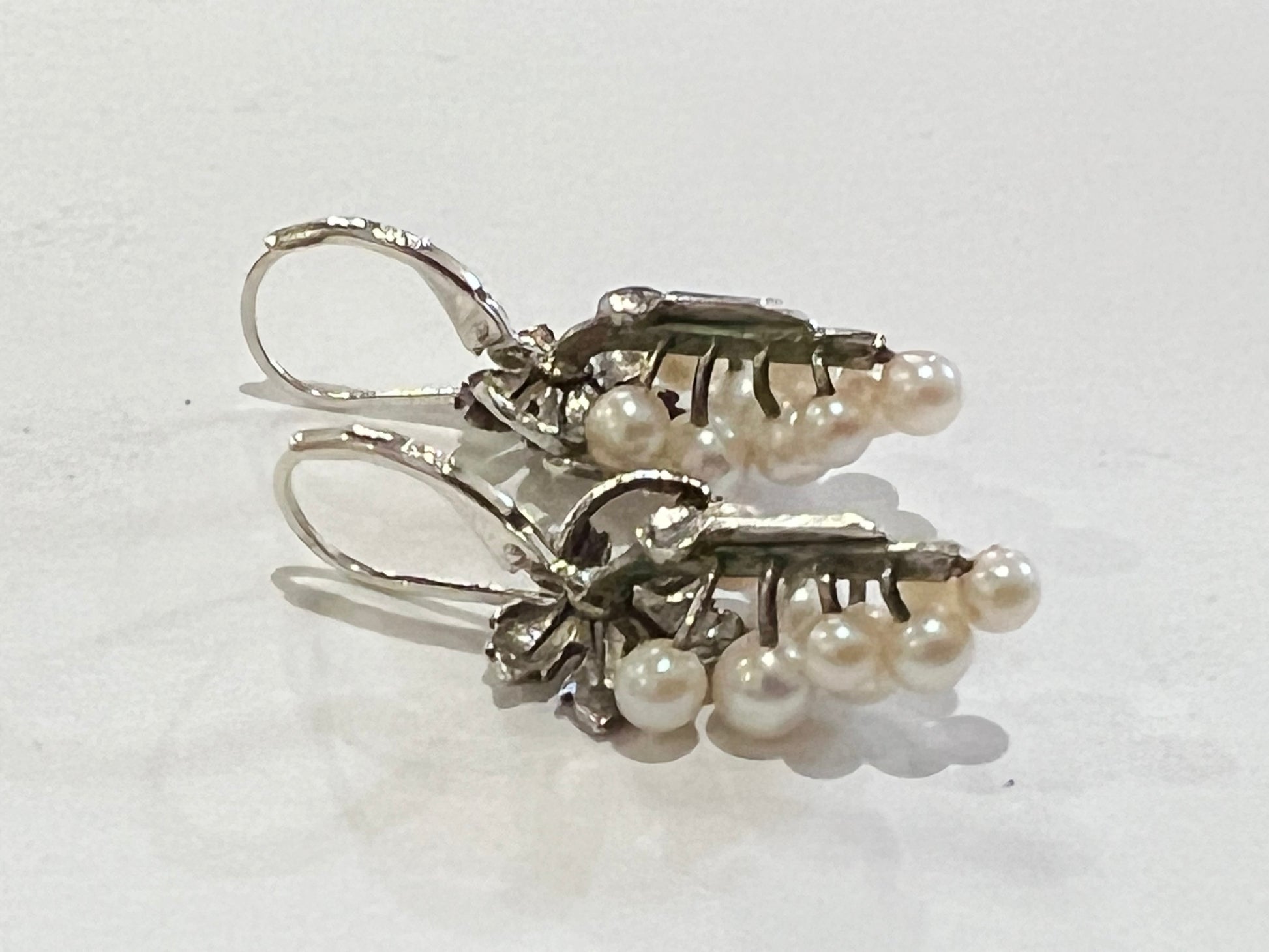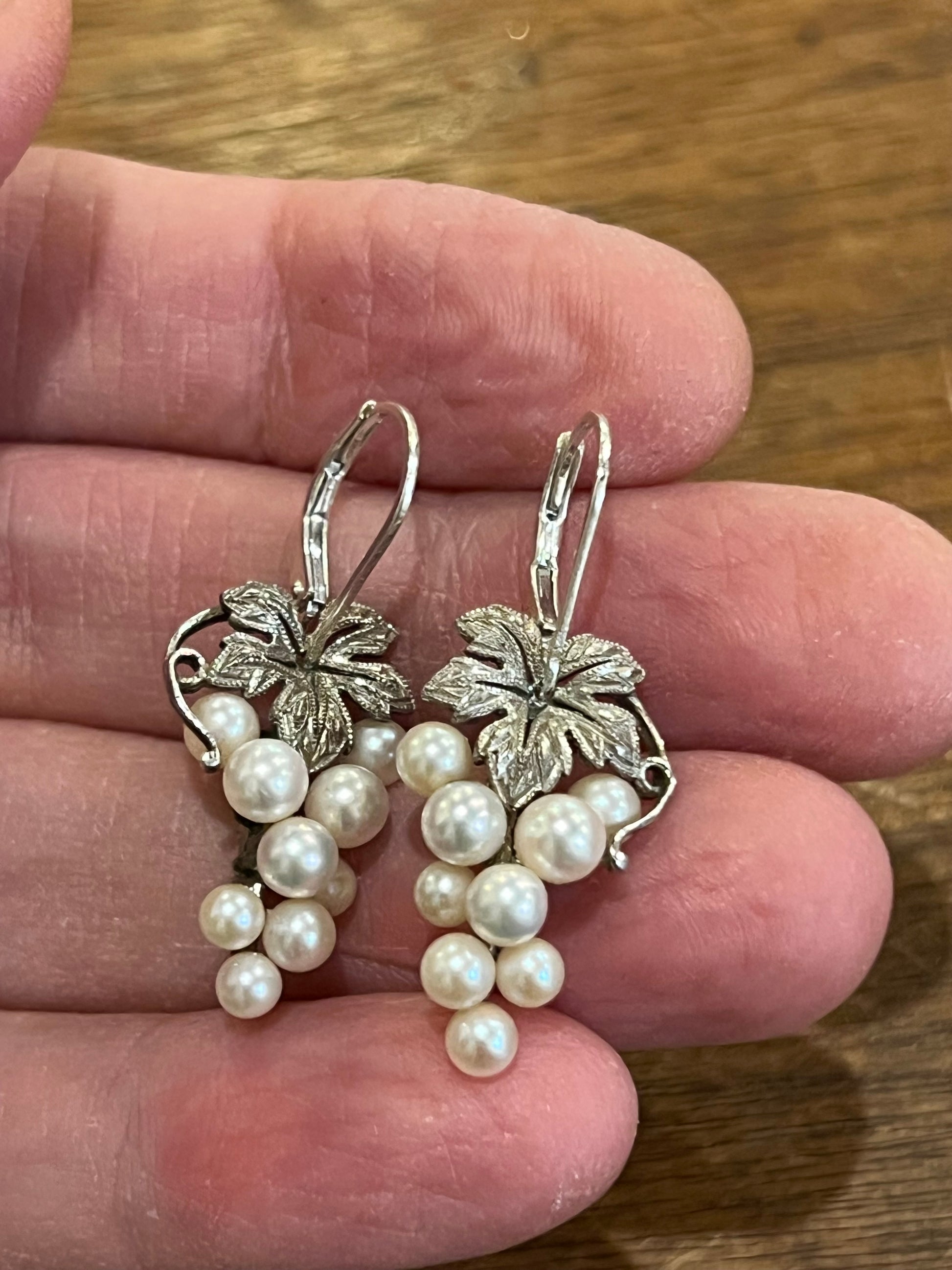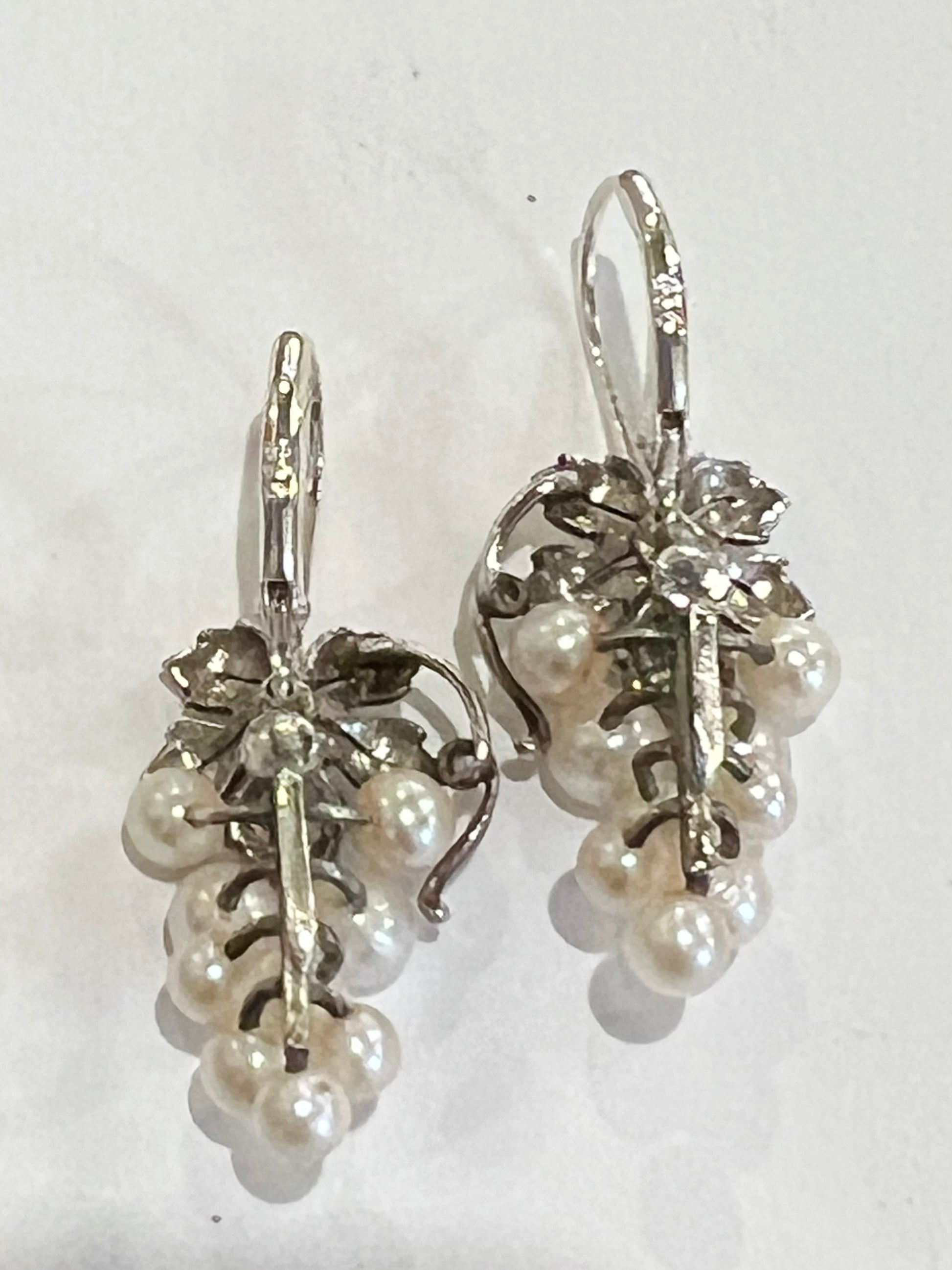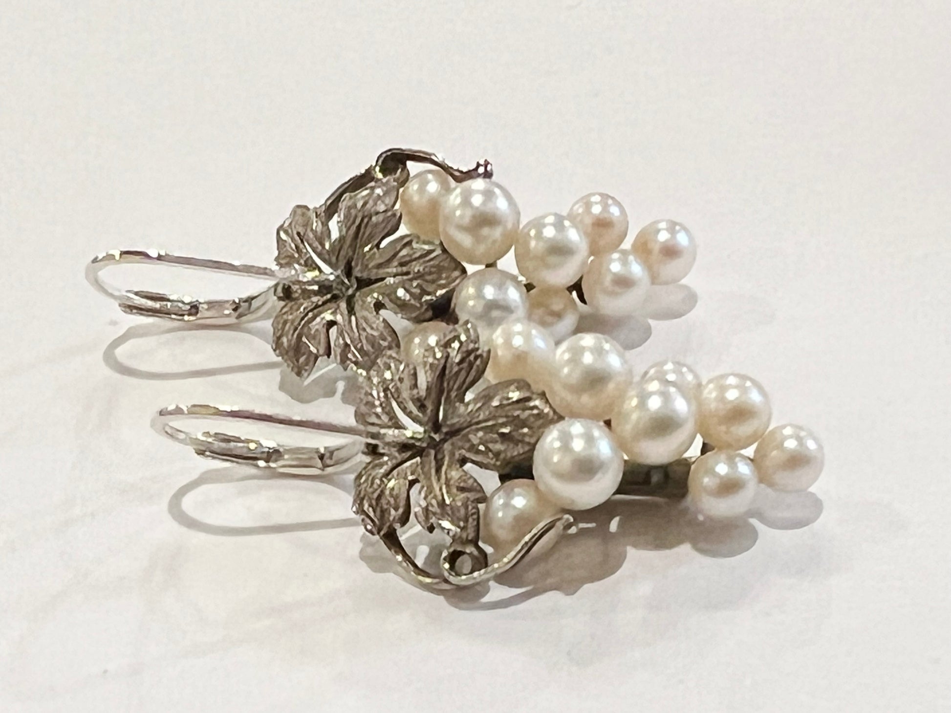 Estate Art Nouveau Akoya Cultured Pearl 900 Silver Grape Cluster Earrings