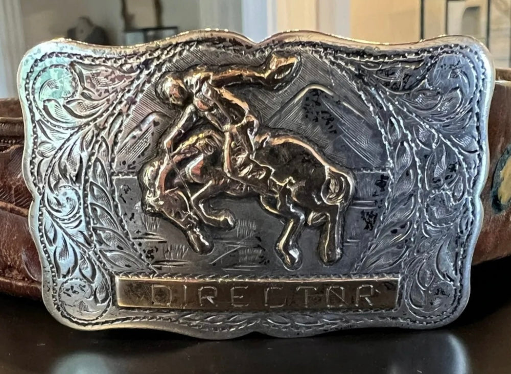 Estate Solid Sterling & 10K YG Hand Engraved San Joaquin Rodeo Directors Belt Buckle