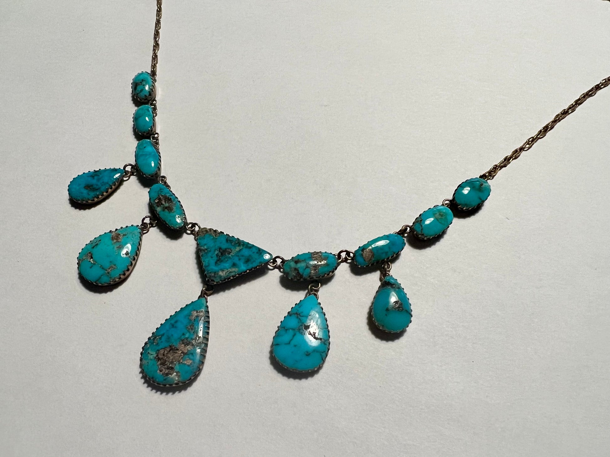Estate Victorian Morenci Turquoise Gold Tear Drop necklace