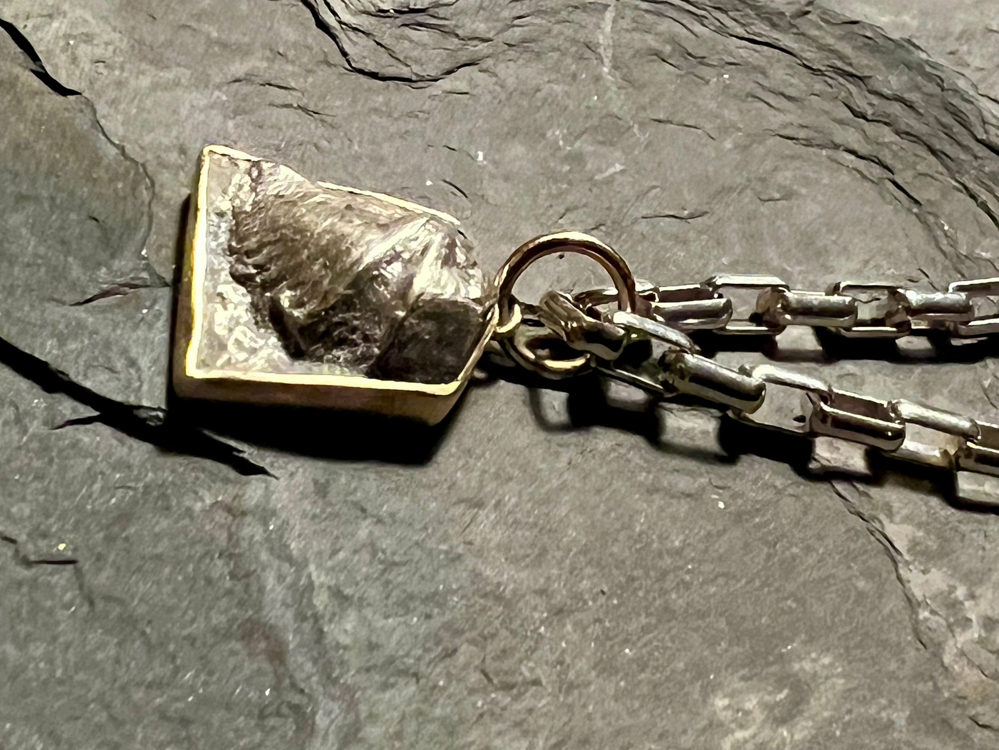 Brachiopod Fossil Sterling Silver &14K Pendant Unisex - Cayuga Collection Necklace