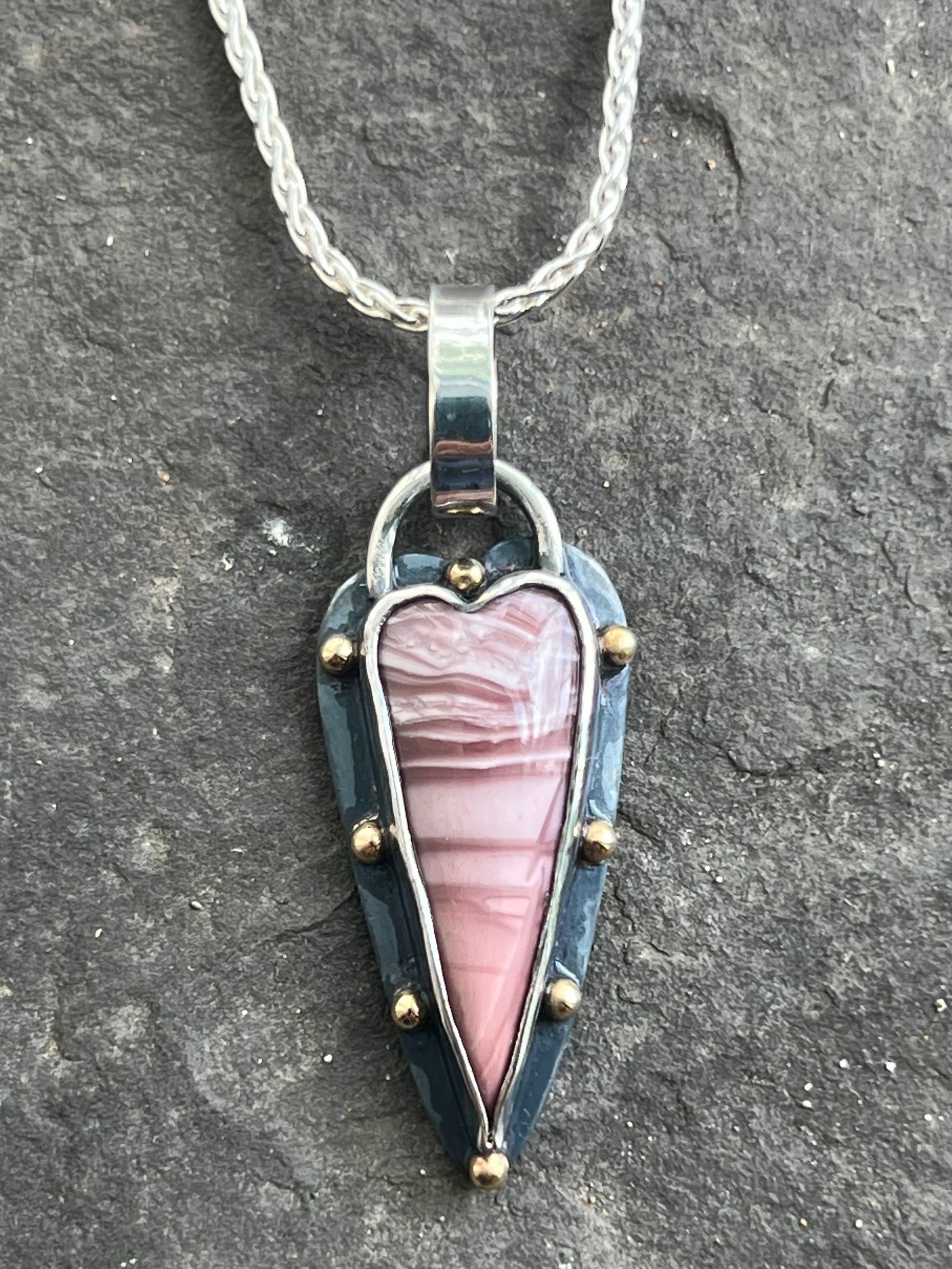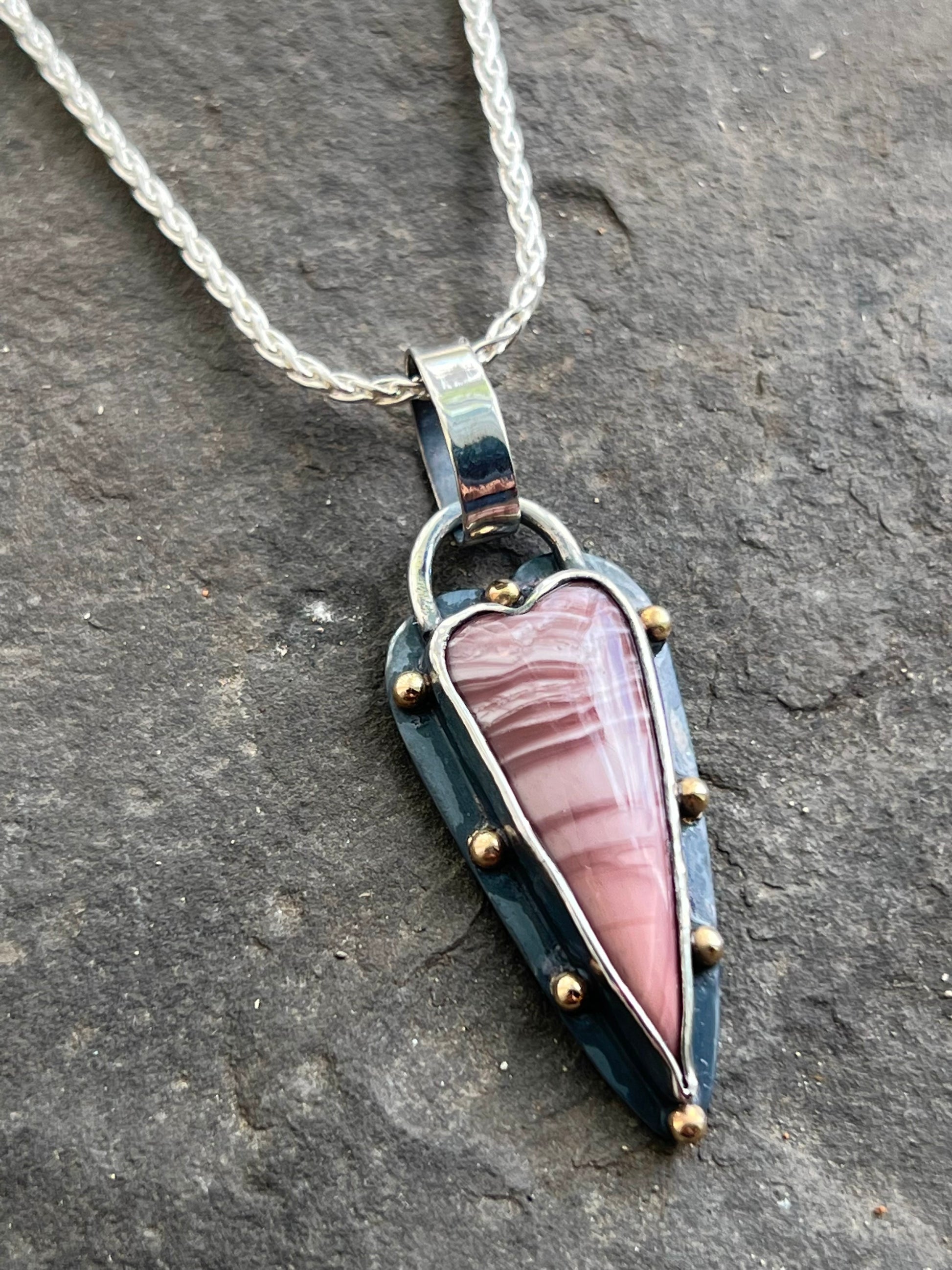 Imperial Pink Jasper Sterling & 14K Crooked Little Heart Pendant - One of a Kind Necklace