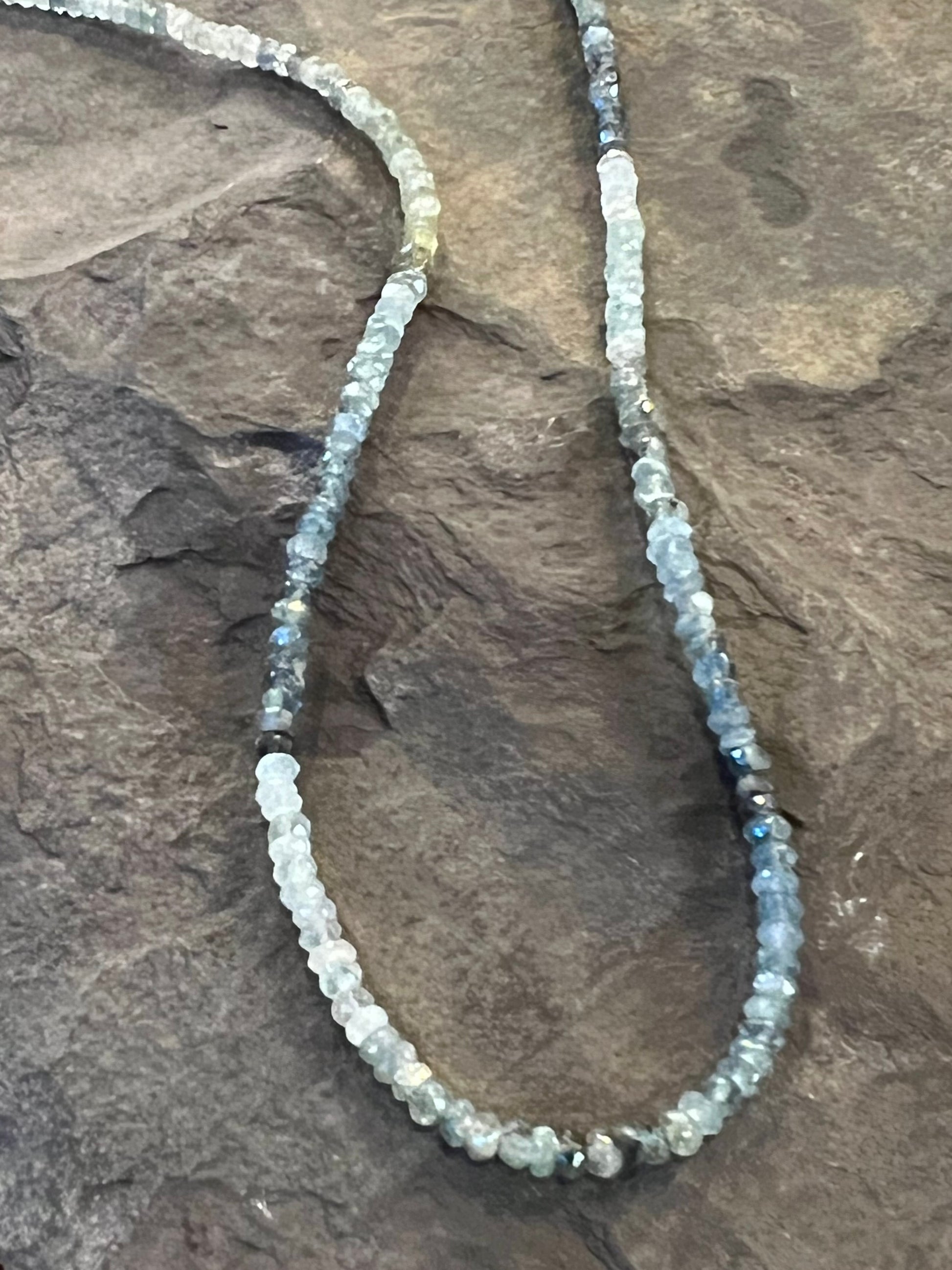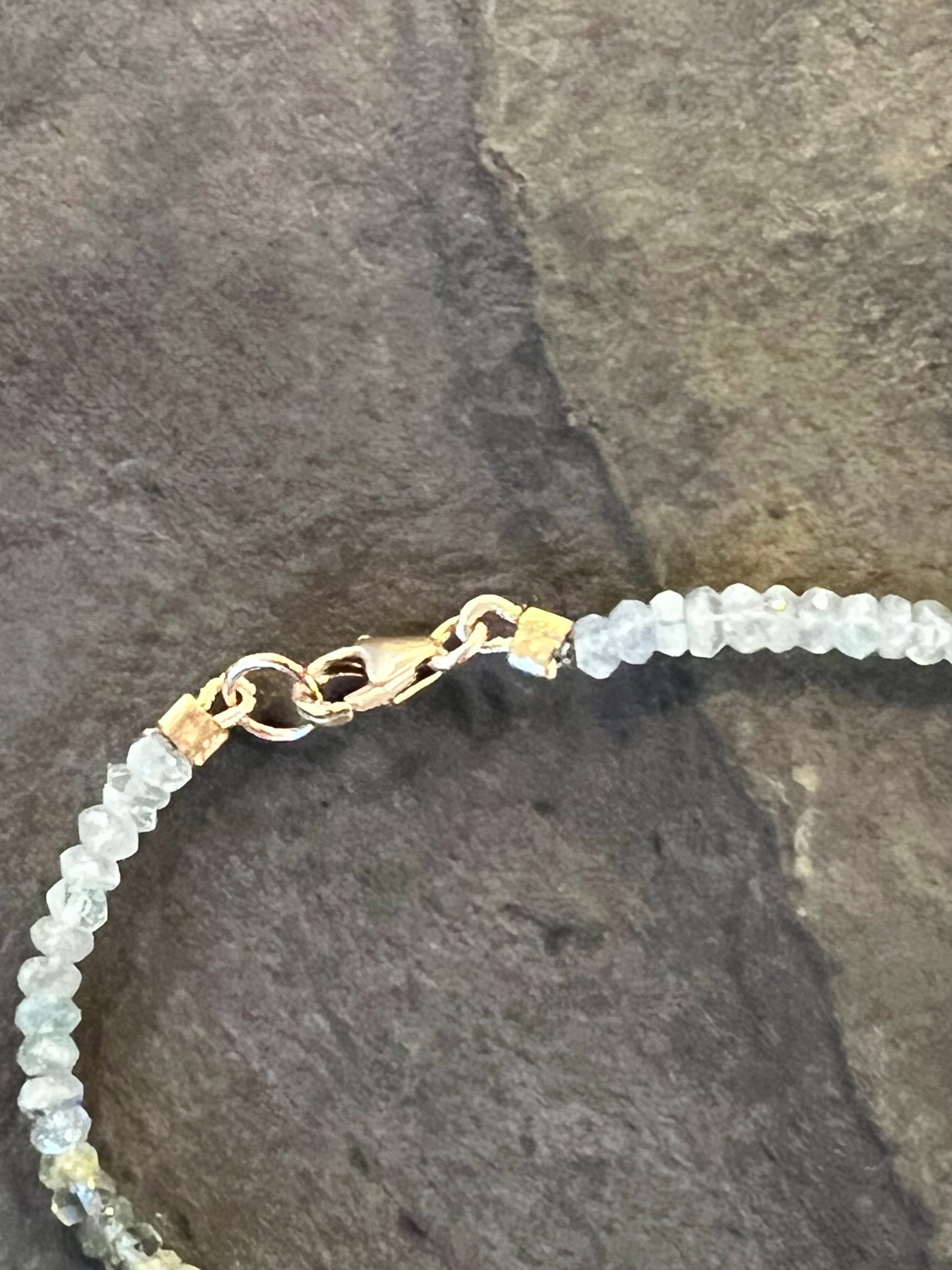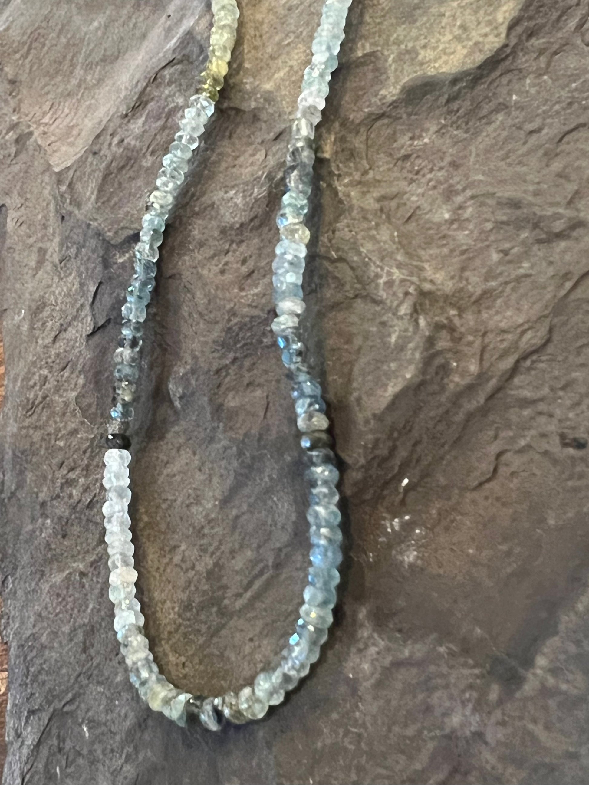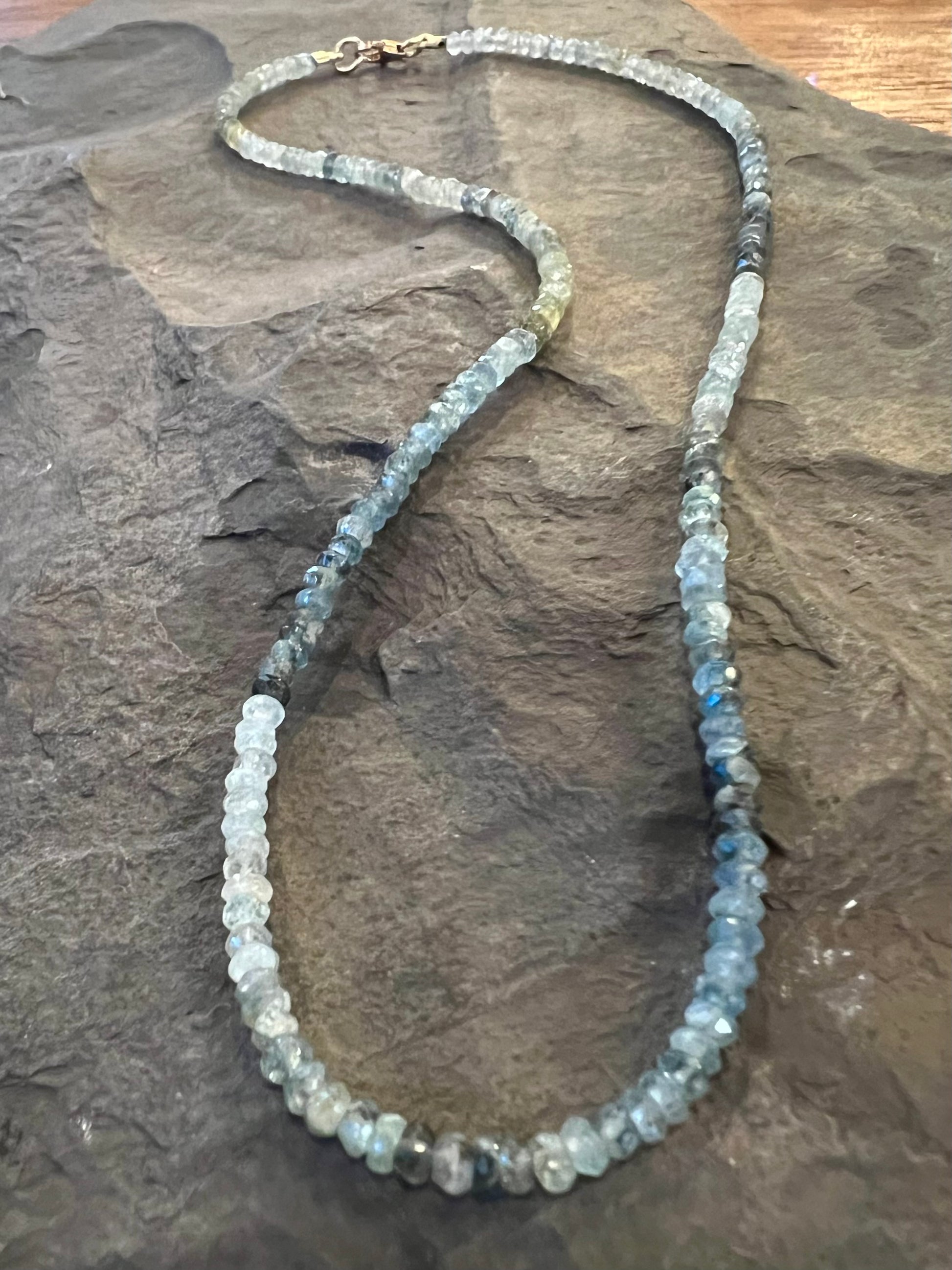 Ombré Moss Aquamarine Faceted Rondelle 16” Strand Necklace 14K