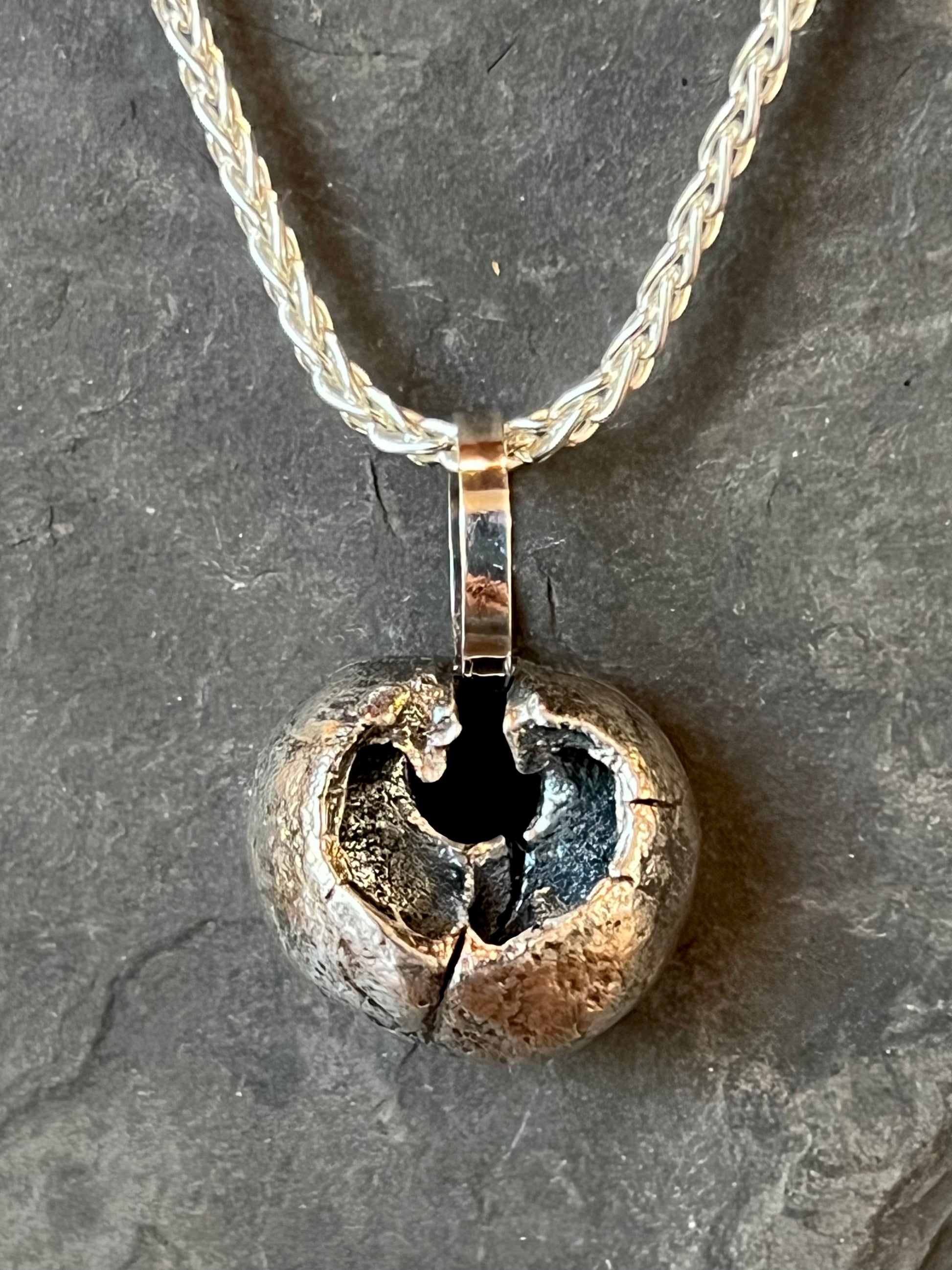 Cast in solid sterling silver and oxidized to bring out all of the water worn detail.