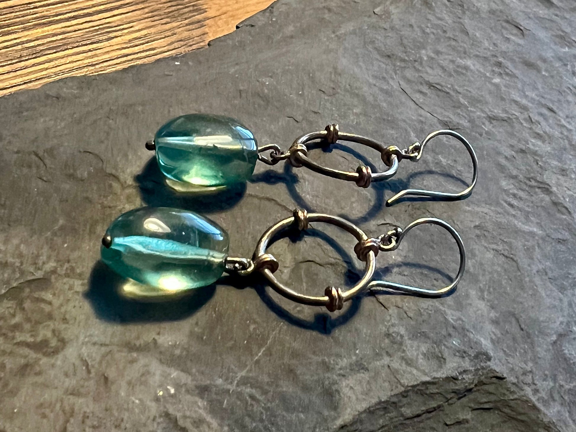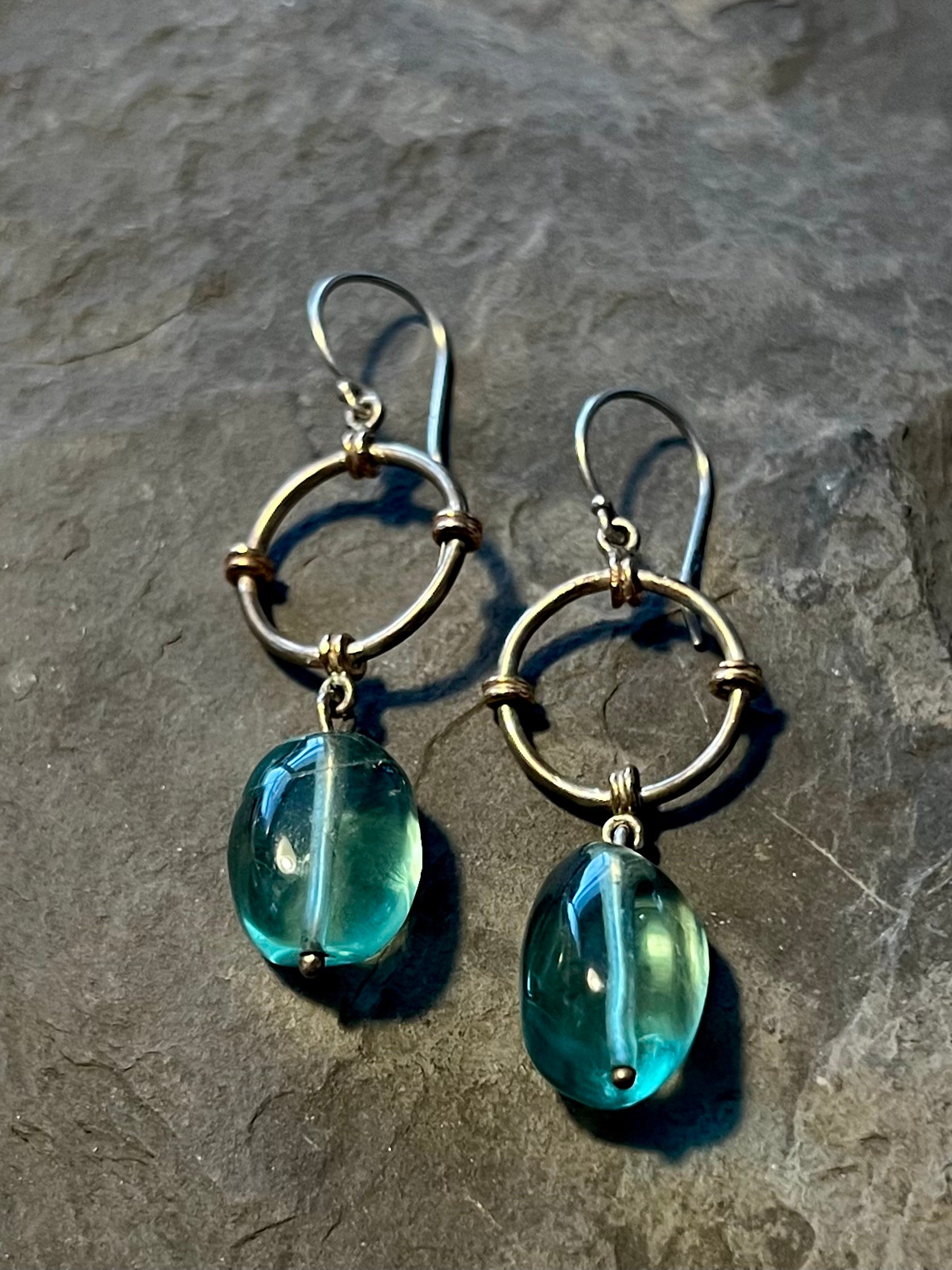 True North Fluorite Sterling & 14K Dangle - One of a Kind Earrings