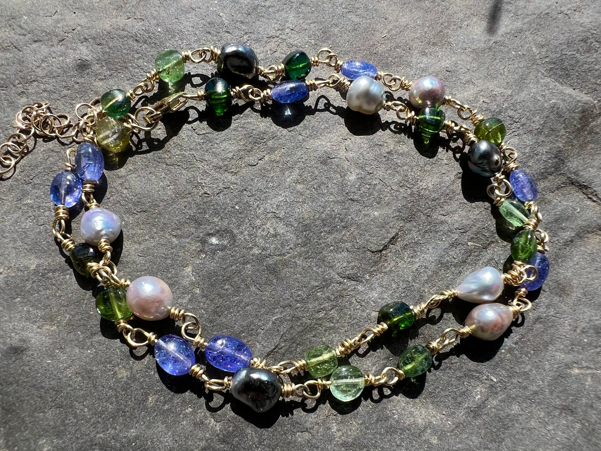 Wild Violet Strand - One of a Kind Necklace- 14K Tourmaline Tanzanite Pearl